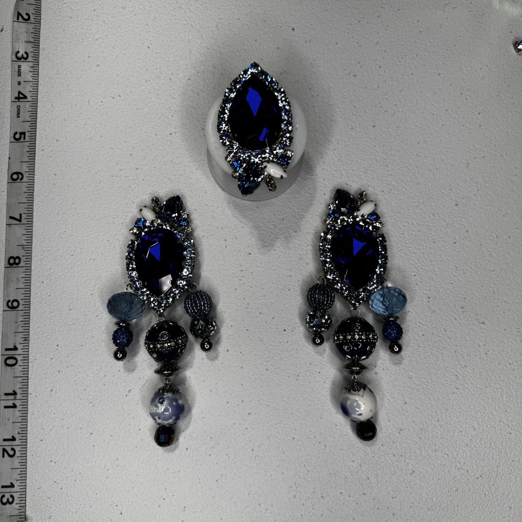 Clip Backs – Iced Sapphire Bead Drop Earring & Ring Set