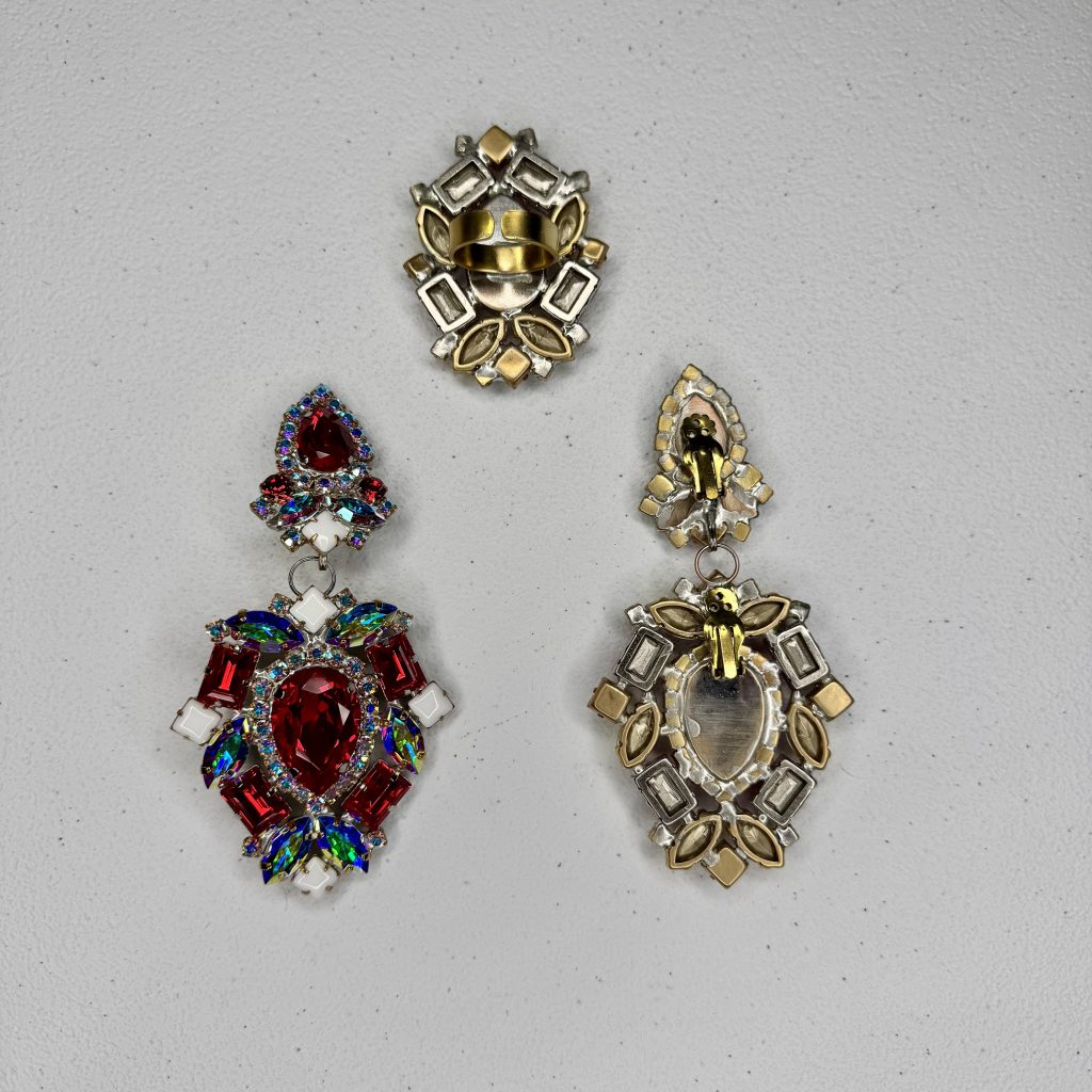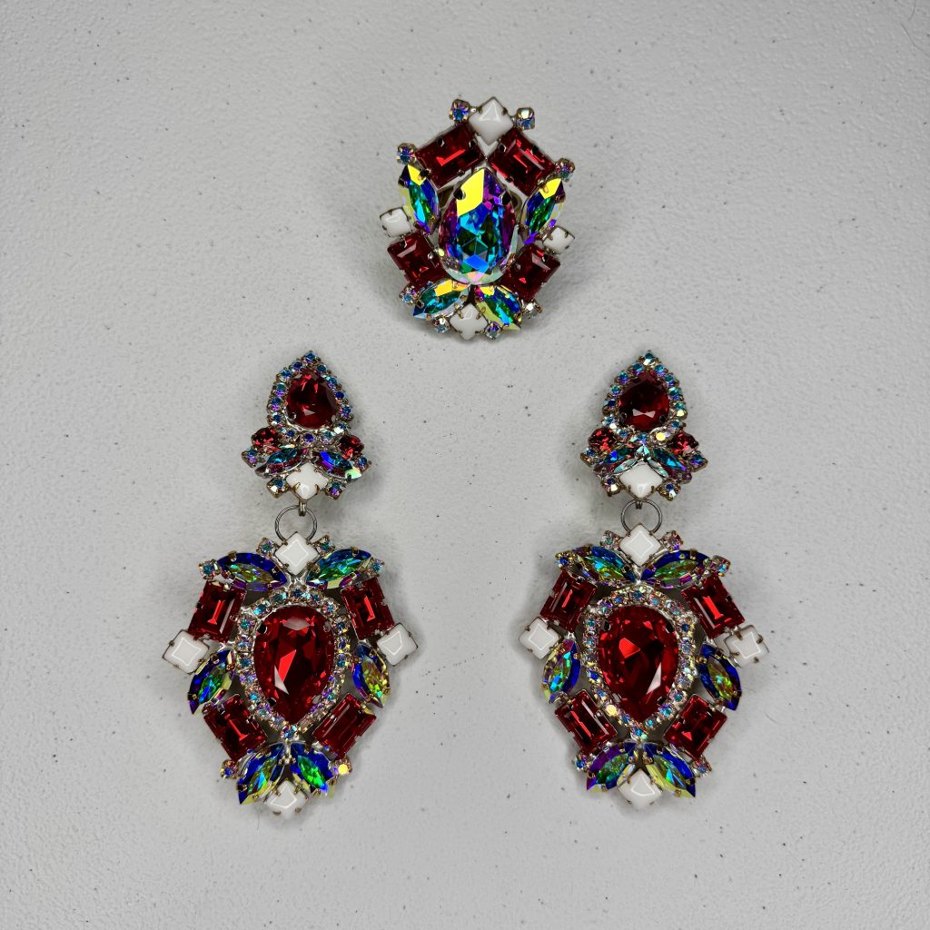 Clip Backs – Red, White & AB BABY “SPARKLE” 3-N-1 Earring & Ring set