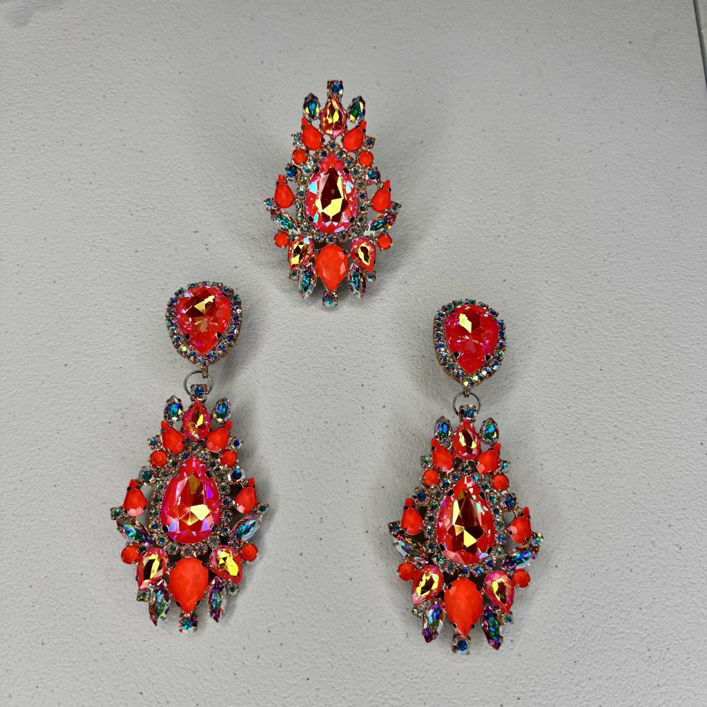 Magnet Backs – Orange Zing “SPARKLE” 3-N-1 Earring & Ring set